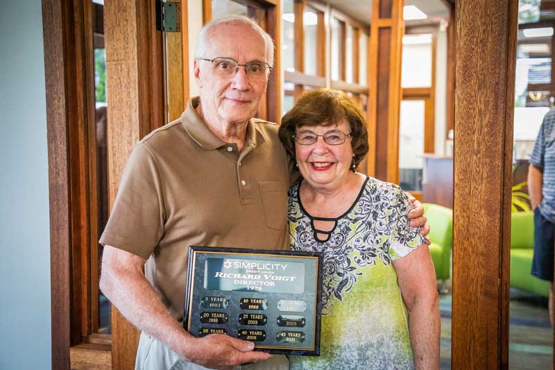 Richard “Dick” Voigt, Board Chairman, has retired from the Simplicity CU Board of Directors after Forty-Three years of service to the Simplicity Family,