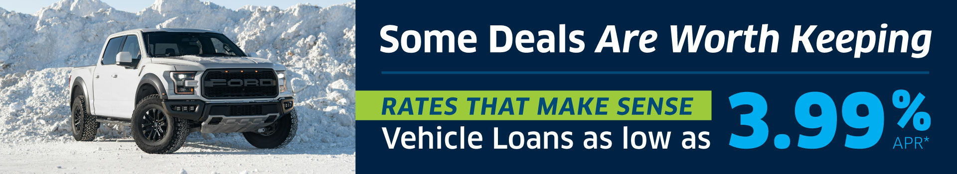 *APR = Annual Percentage Rate. To qualify, you must meet standard underwriting guidelines. Rates as low as 3.99% APR. Applies to new consumer vehicle loans with approved security for terms up to 72 months. Rate and terms subject to change. Example: A loan of $1,000 at 3.99% APR for 72 months would result in a monthly payment of approximately $15.65. Actual rate is based on creditworthiness, loan term, and other factors. The rate listed is the credit union’s best rate and is subject to credit approval; not all members will qualify. No additional rate discounts apply. Promotion valid February 1–28, 2026. Membership eligibility required. Insured by NCUA.